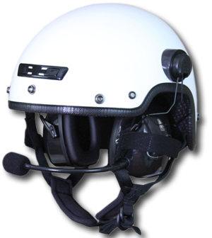 This helmet can be used with Comtronics Model-3100 Headset, Model-3000 Headset, PRO-LITE SUPERIOR STEREO Headset and COM-AIR Model-5000 General Aviation Headset. There is a cut-out in the liner into which the headband fits snuggly. And the chin strap has the new built-in ultra-soft chin pad design as well.